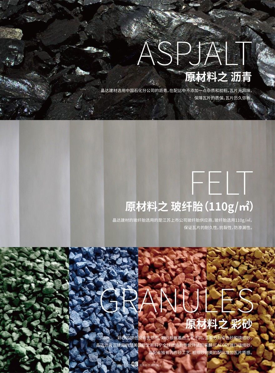 | 品名 | 產地 | 瀝青 | 載體 | 彩砂 | 特點 |